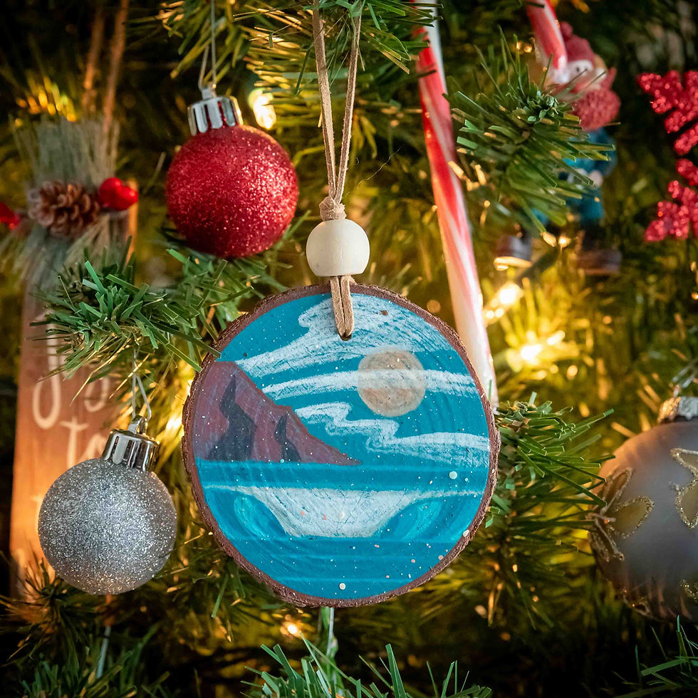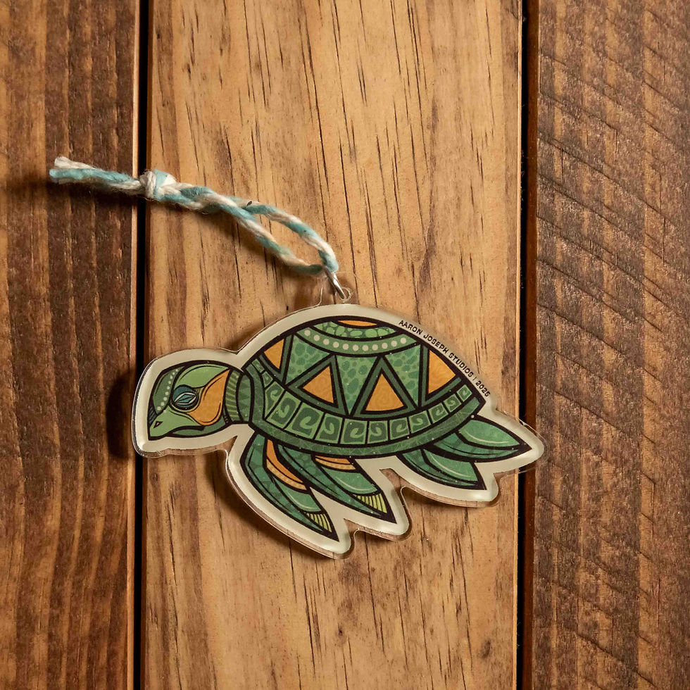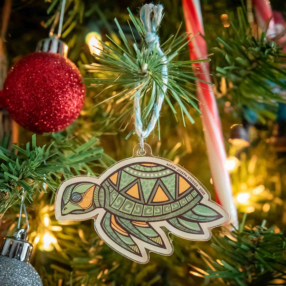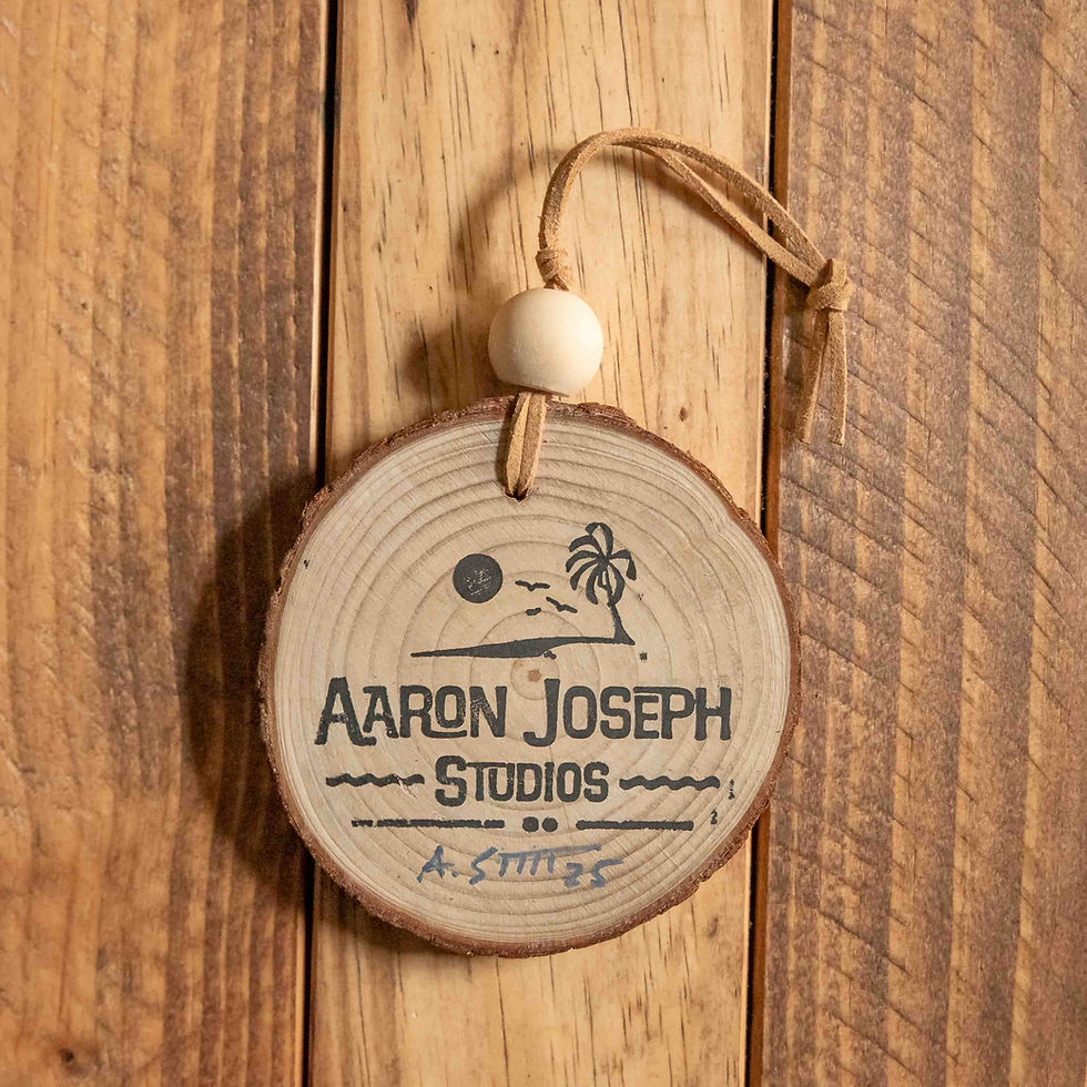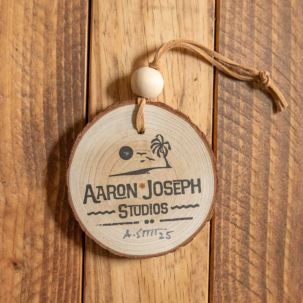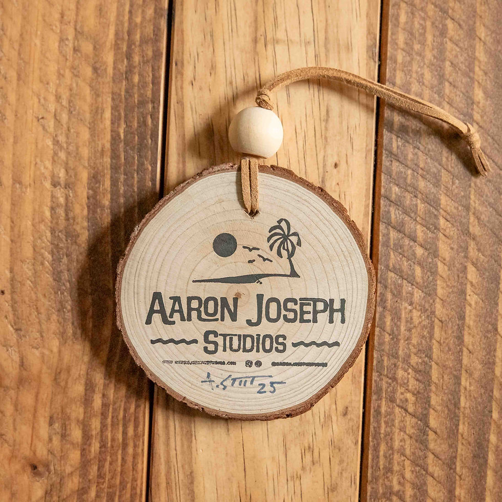 All of my metal oranaments feature a full color illustration on one side and the Aaron Joseph Studios branding, along with the year, on the back.